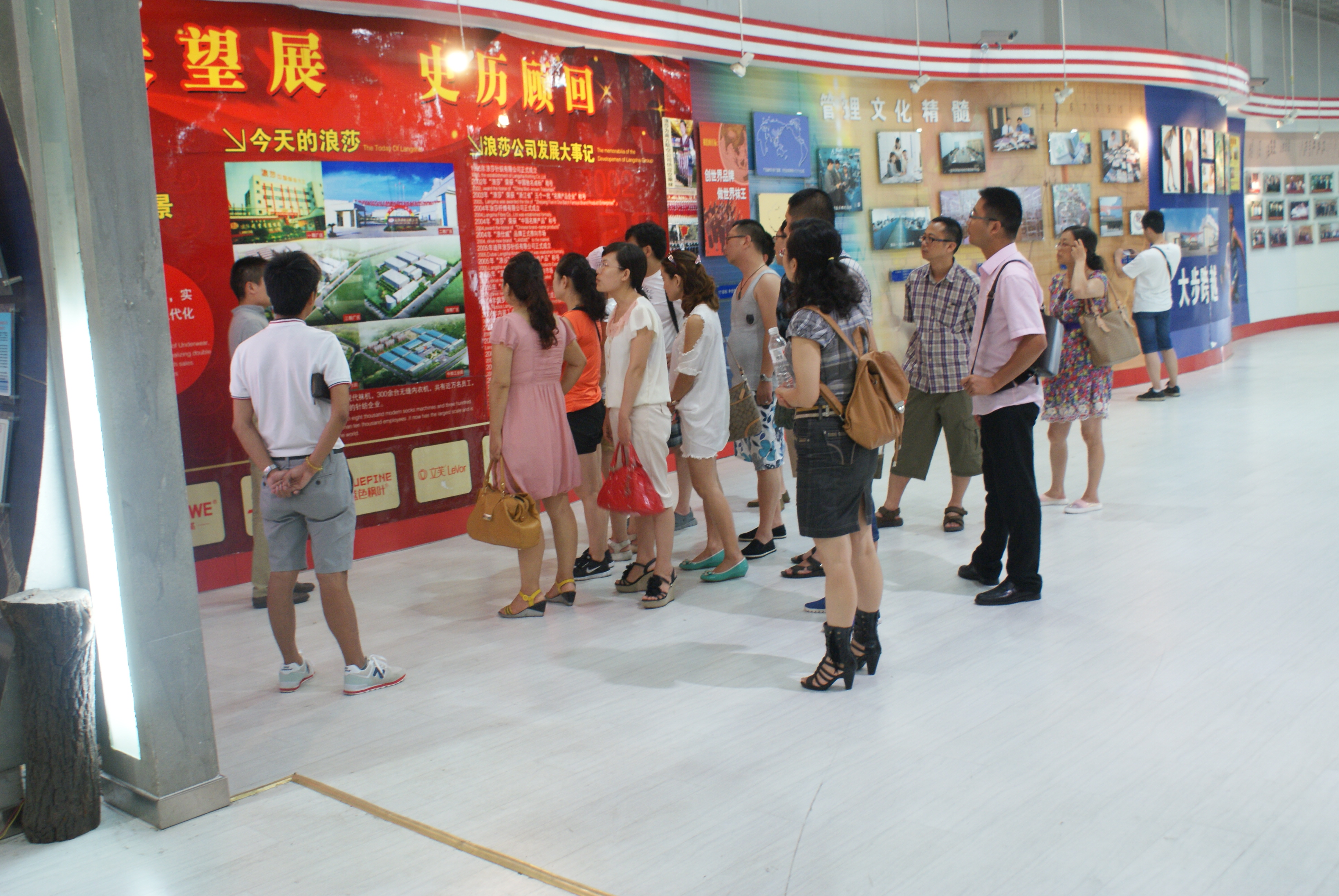 山西客人首先參觀了浪莎產品展覽中心,在工作人員的解說中了解了浪莎集團的發展歷程和企業文化。她們紛紛表示要把浪莎的優秀的理念帶回當地,為當地企業的發展提供借鑒。