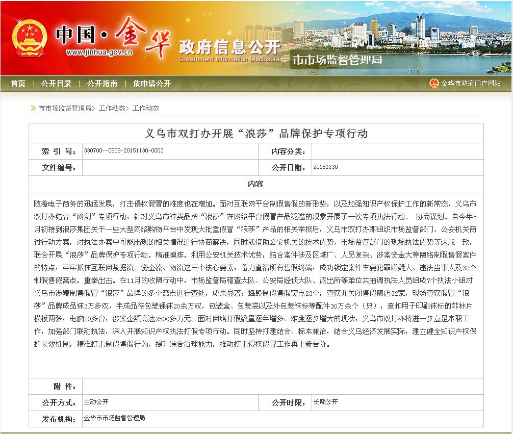 義烏市雙打辦開展“浪莎”品牌保護(hù)專項(xiàng)行動(dòng)