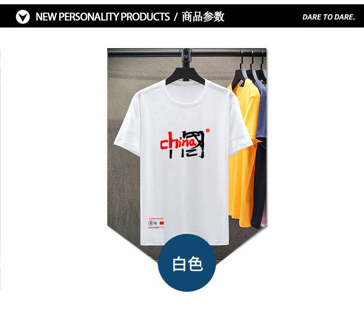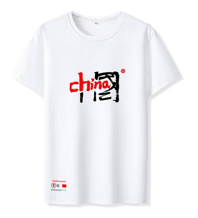 【"中國"印花】夏季新款港風圓領短袖時尚純棉男式T恤