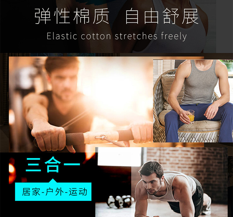 2件100%純棉百搭舒適男士汗衫打底背心T恤