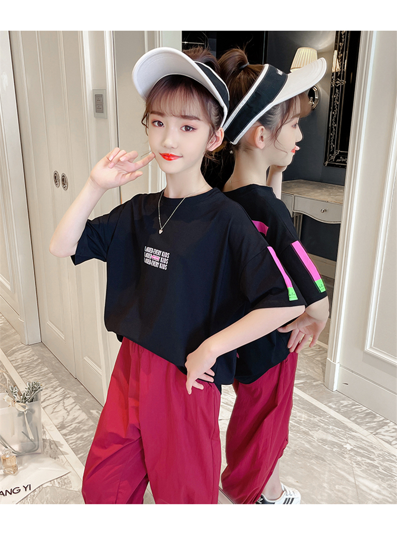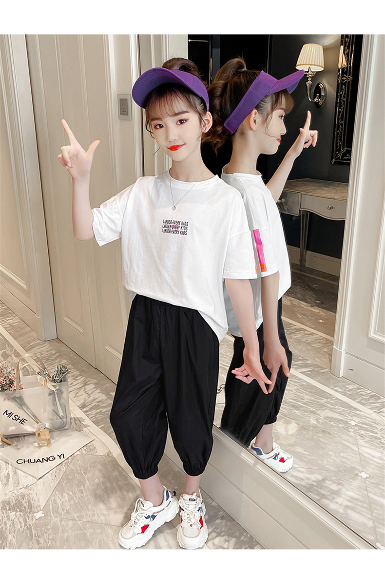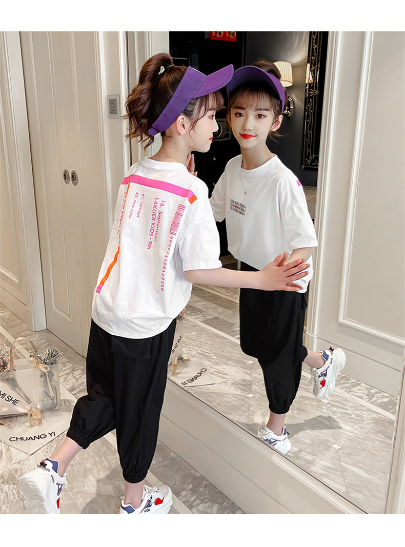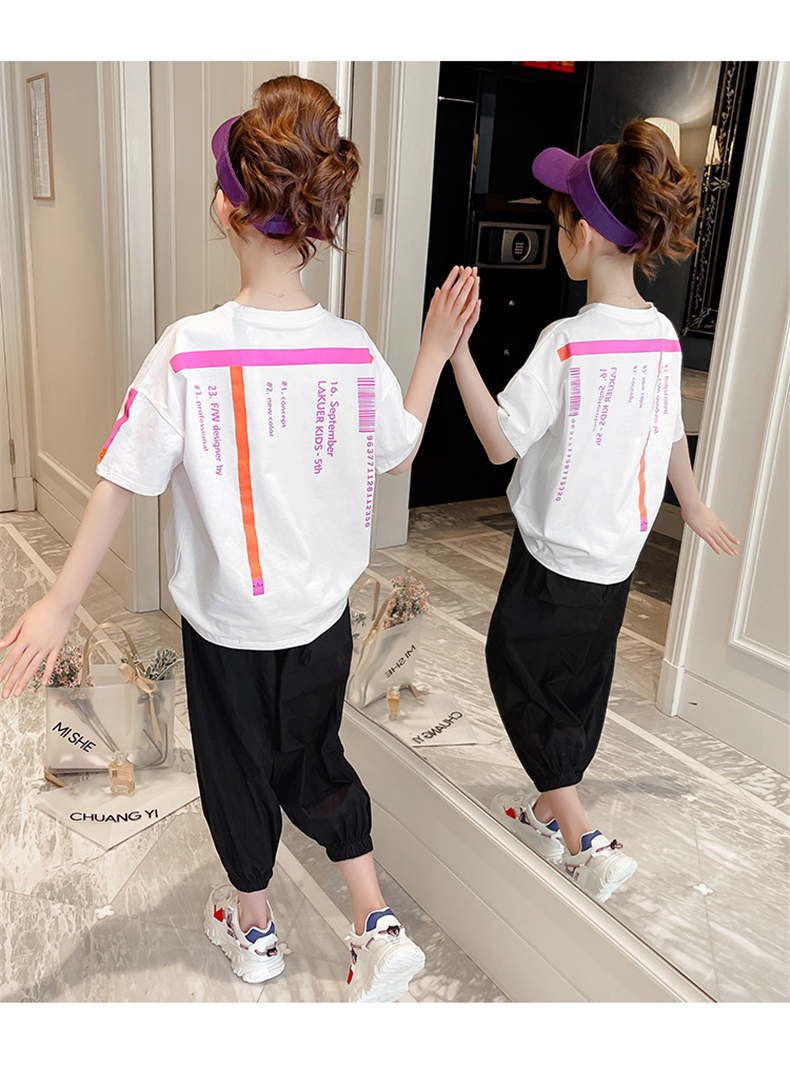 女童夏裝網(wǎng)紅套裝洋氣2021新款韓版時髦大童裝兒童短袖休閑兩件套