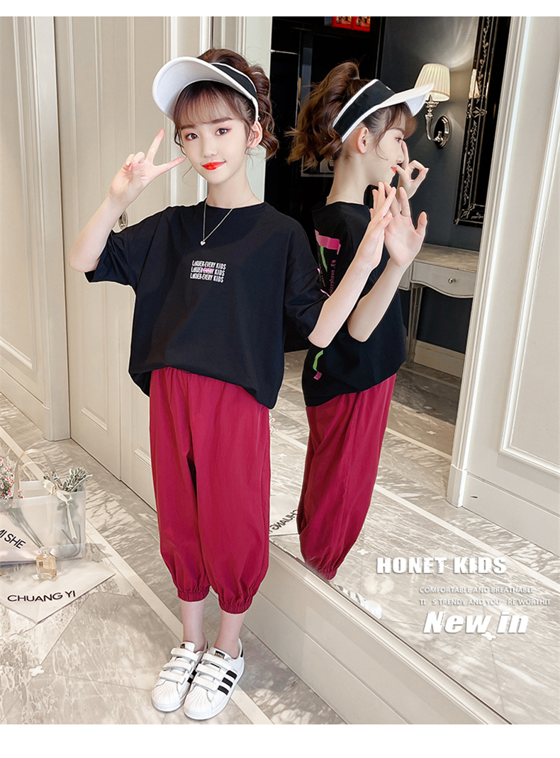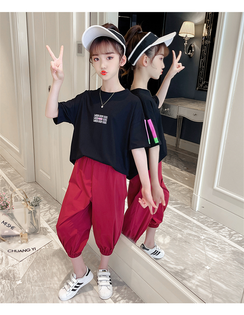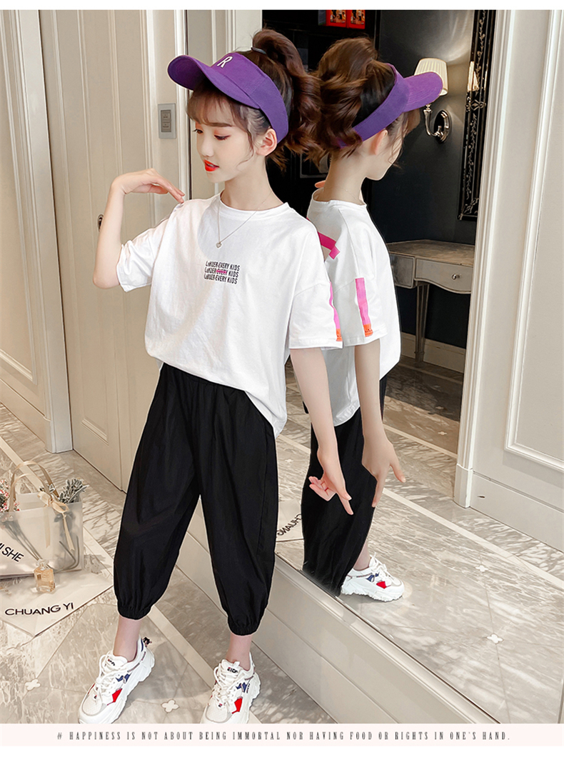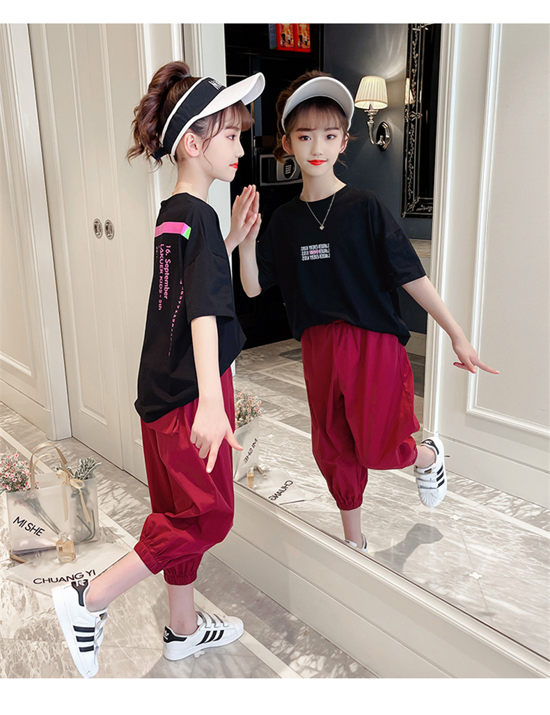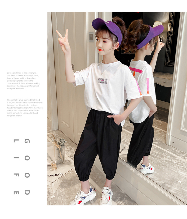 女童夏裝網(wǎng)紅套裝洋氣2021新款韓版時髦大童裝兒童短袖休閑兩件套
