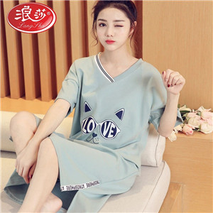浪莎純棉睡裙女夏韓版學生可愛寬松睡衣女家居服可外穿全棉短袖裙