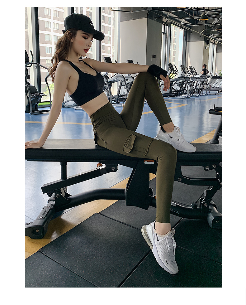 浪莎蜜桃健身褲女彈力緊身速干跑步運動褲提臀高腰收腹工裝瑜伽褲
