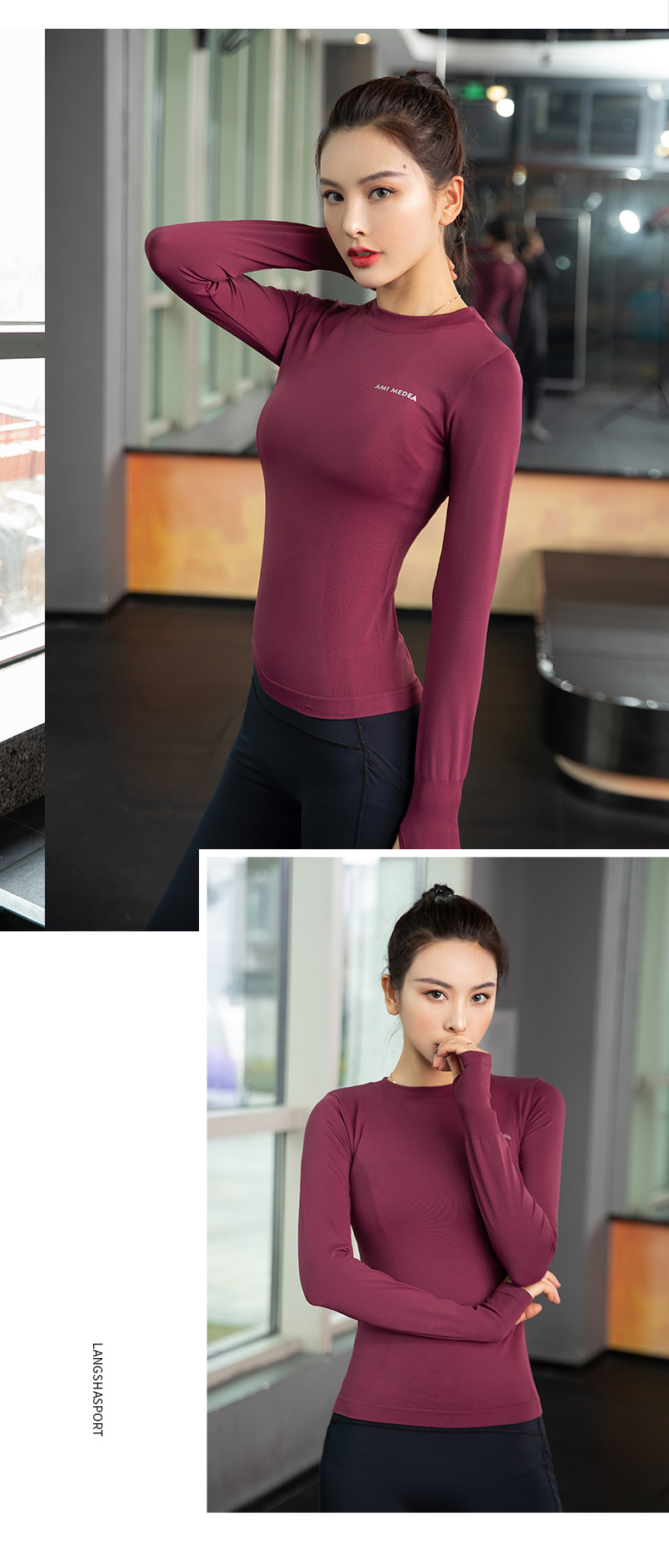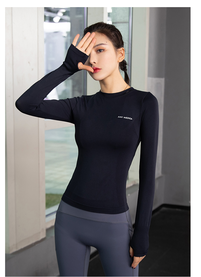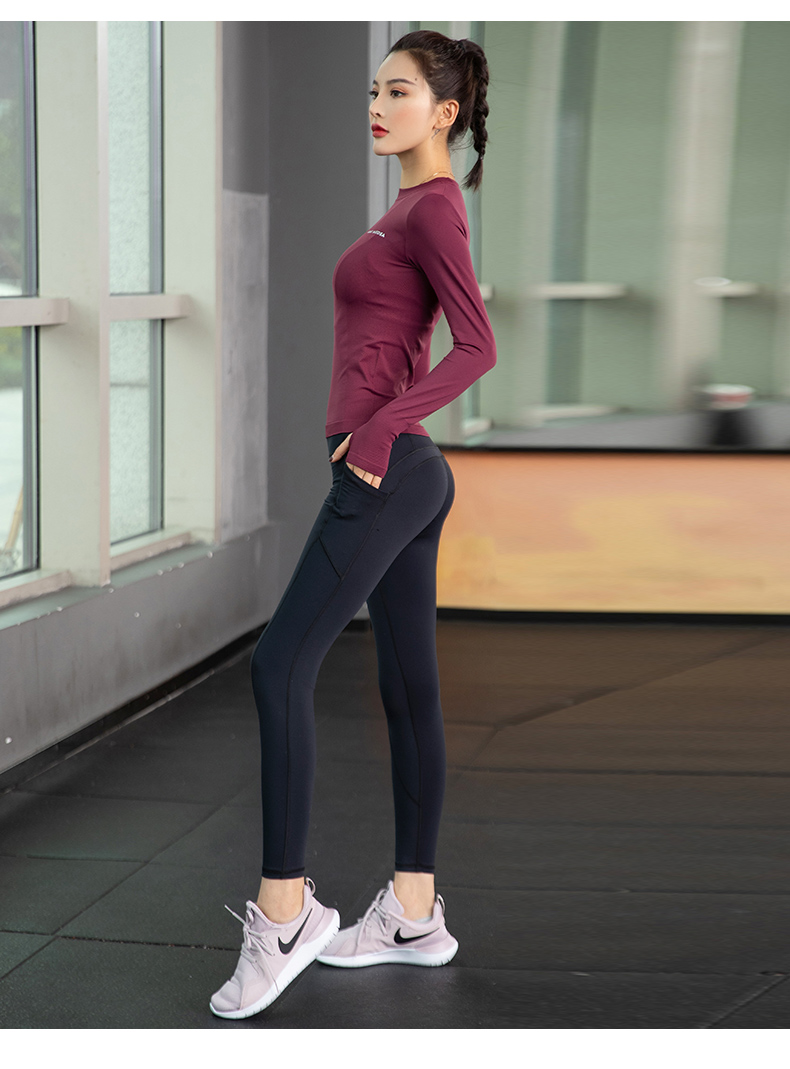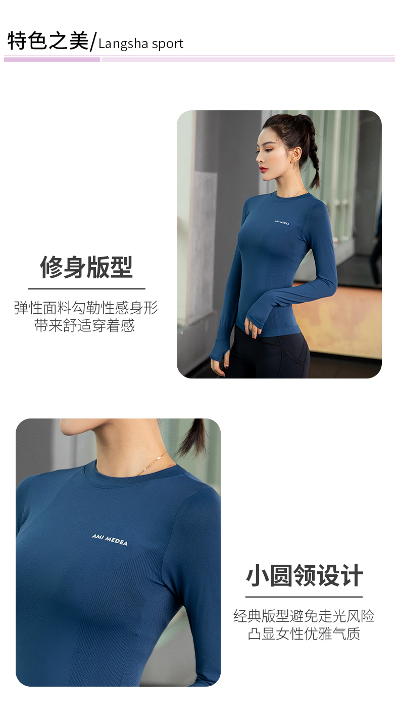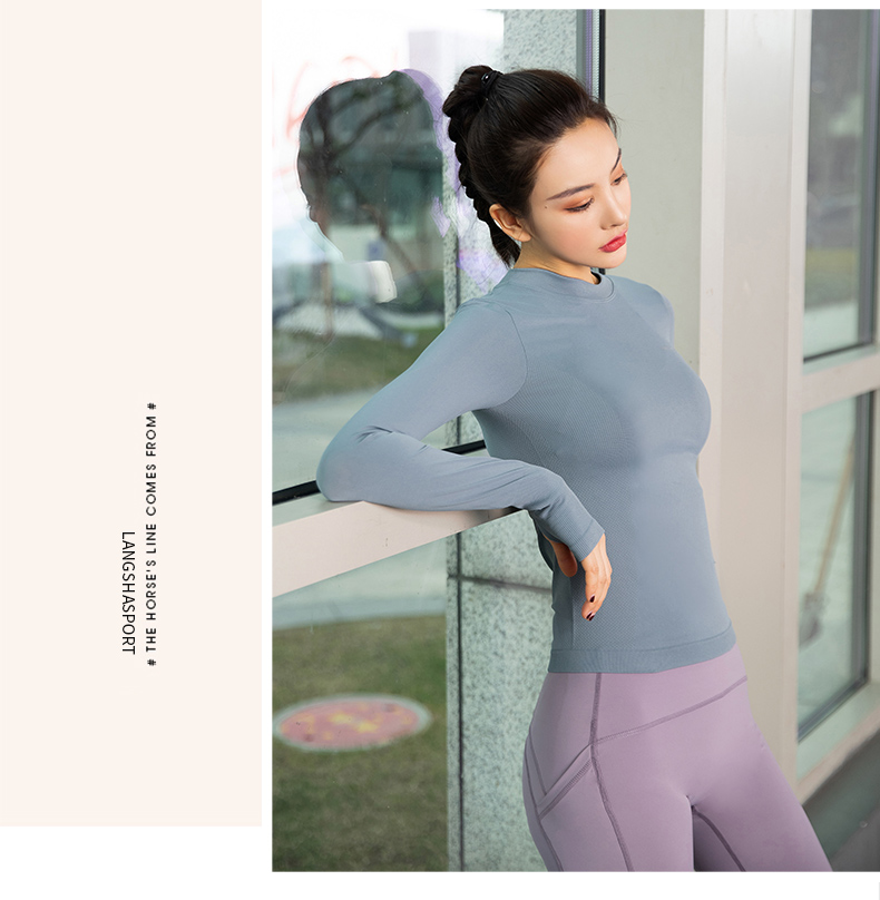 浪莎運動上衣女修身瑜伽服跑步秋冬吸汗緊身透氣速干新款健身長袖