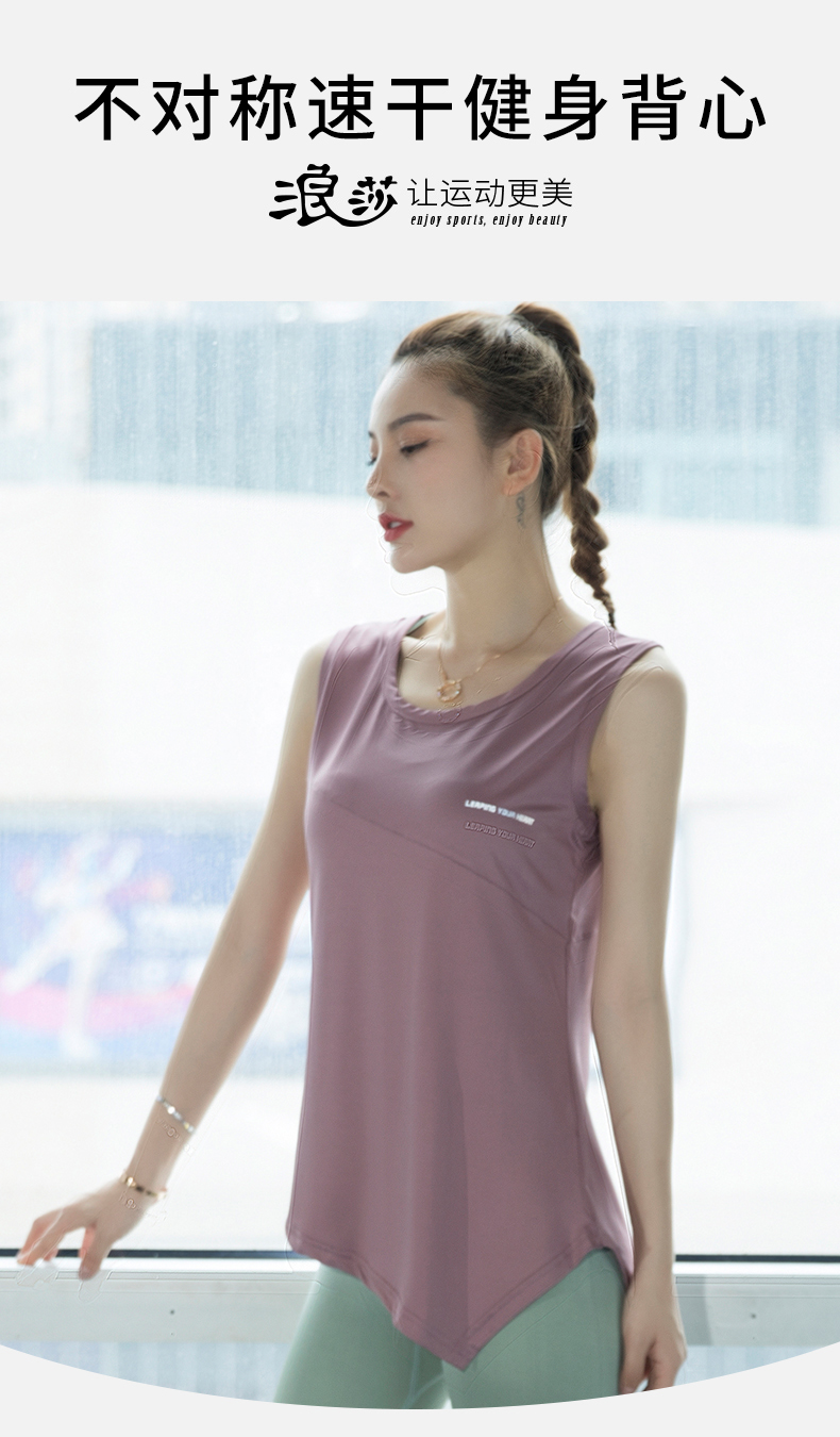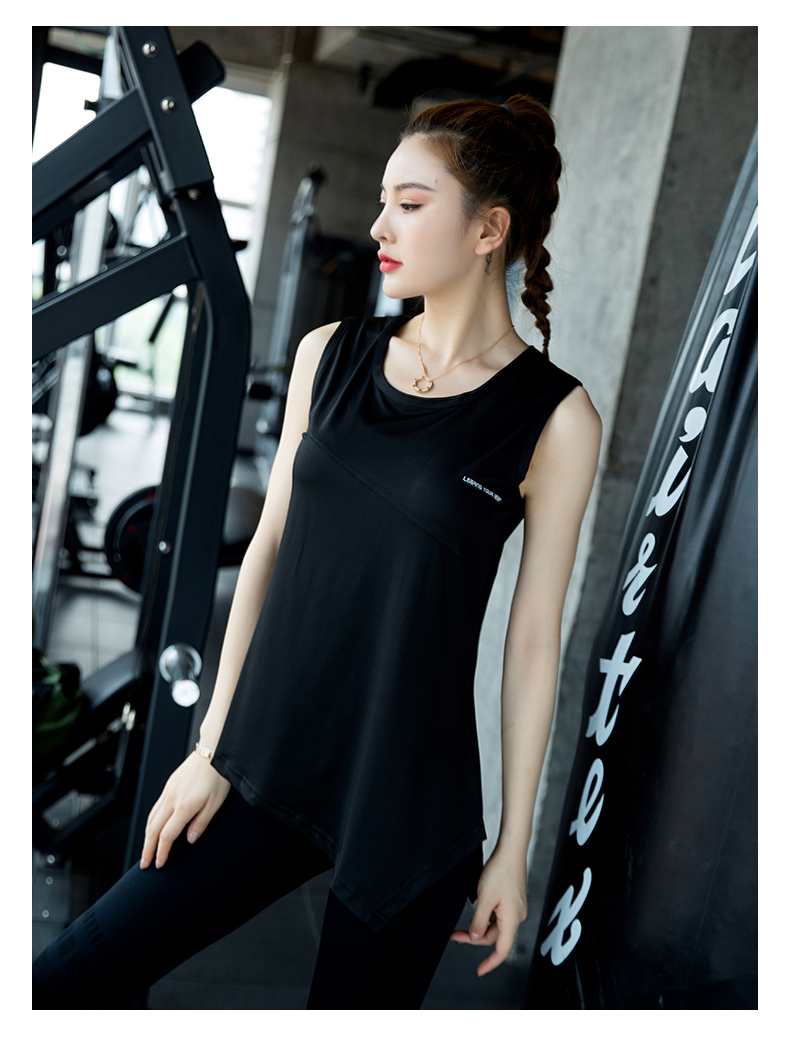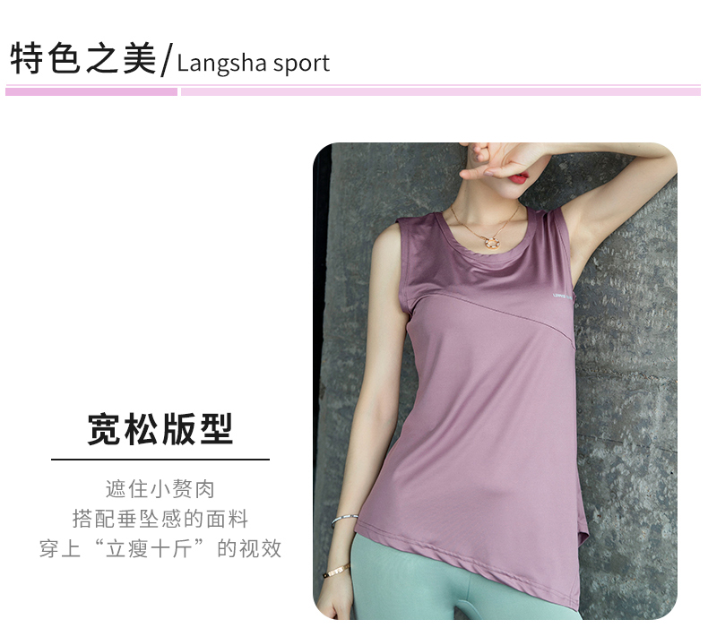 浪莎運動背心女寬松外穿瑜伽上衣無袖速干T恤跑步時尚長健身罩衫