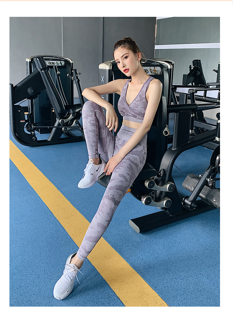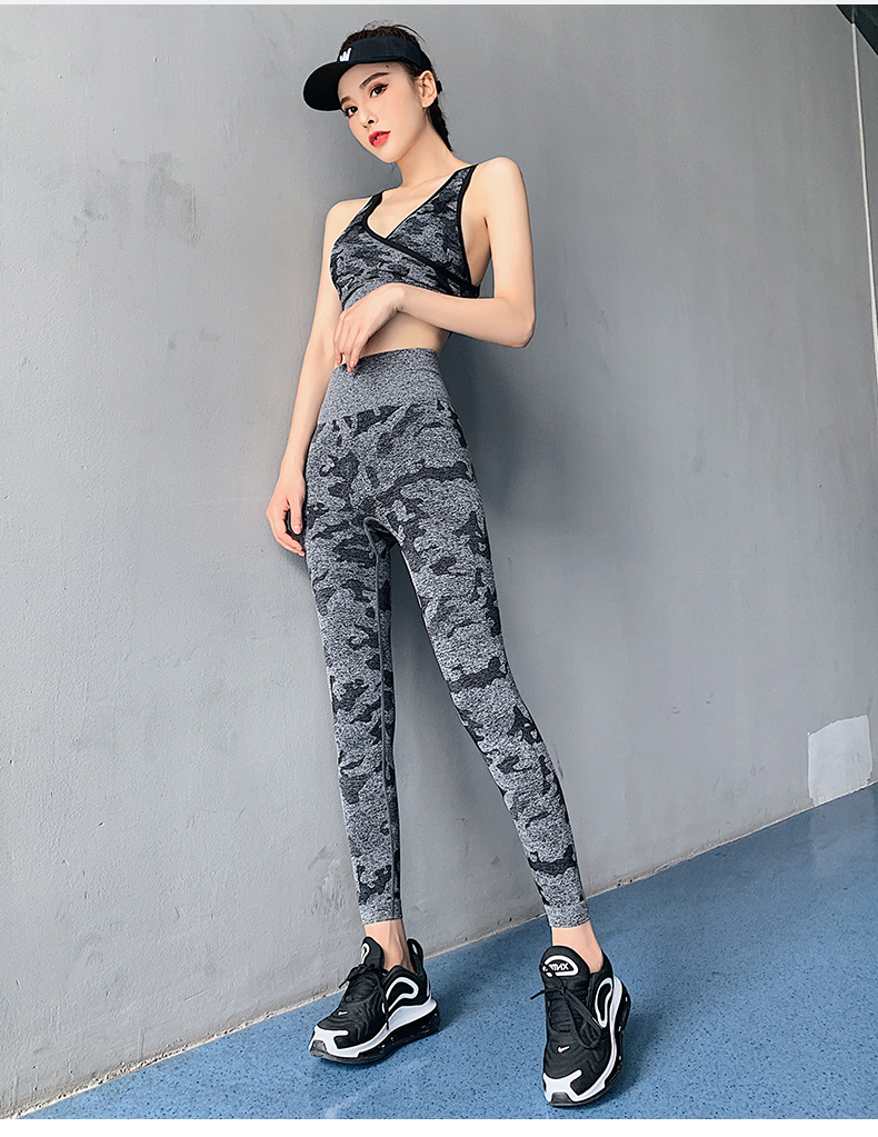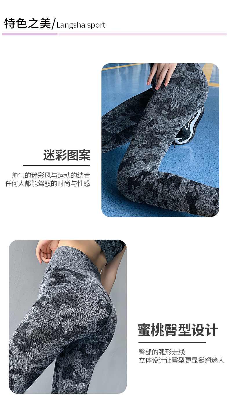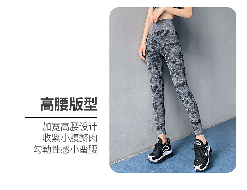 浪莎高腰健身褲女彈力緊身套裝提臀迷彩速干跑步運動收腹瑜伽褲
