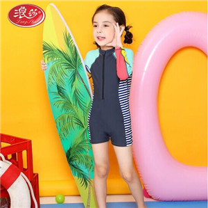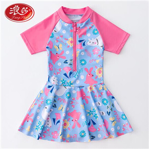 浪莎(langsha)兒童泳衣女童中大童連體游泳衣寶寶小公主新款女孩裙式泳裝戲水裝備 粉邊藍(lán)底 M碼(建議90-100cm)