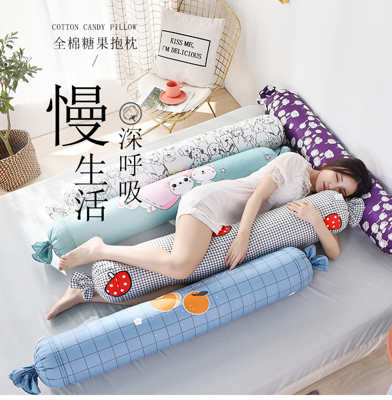 浪莎夏天純棉糖果圓柱枕頭夏季睡覺側(cè)睡夾腿抱枕長條枕女生可拆洗