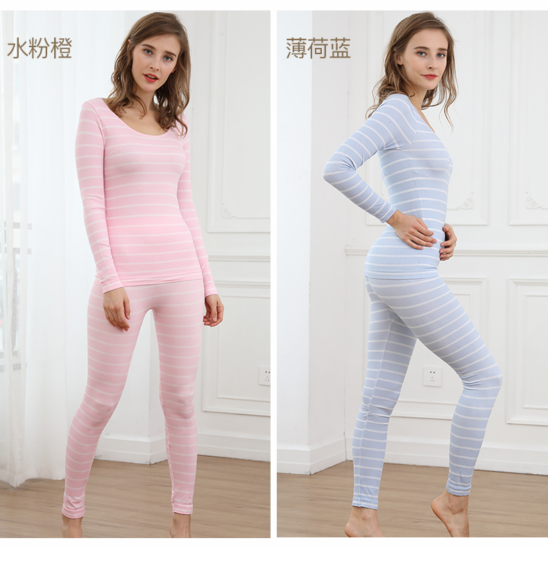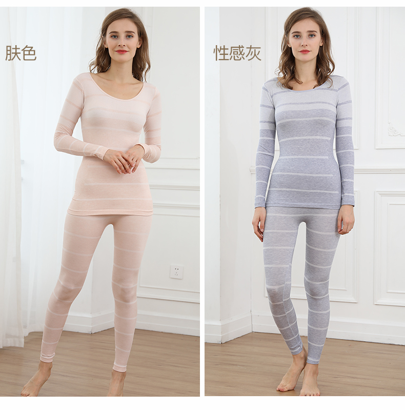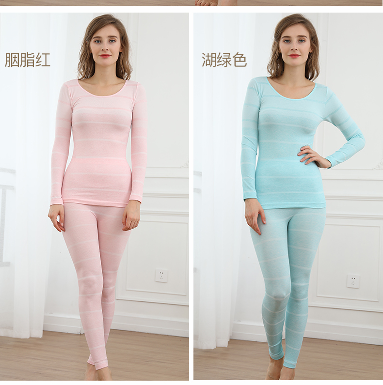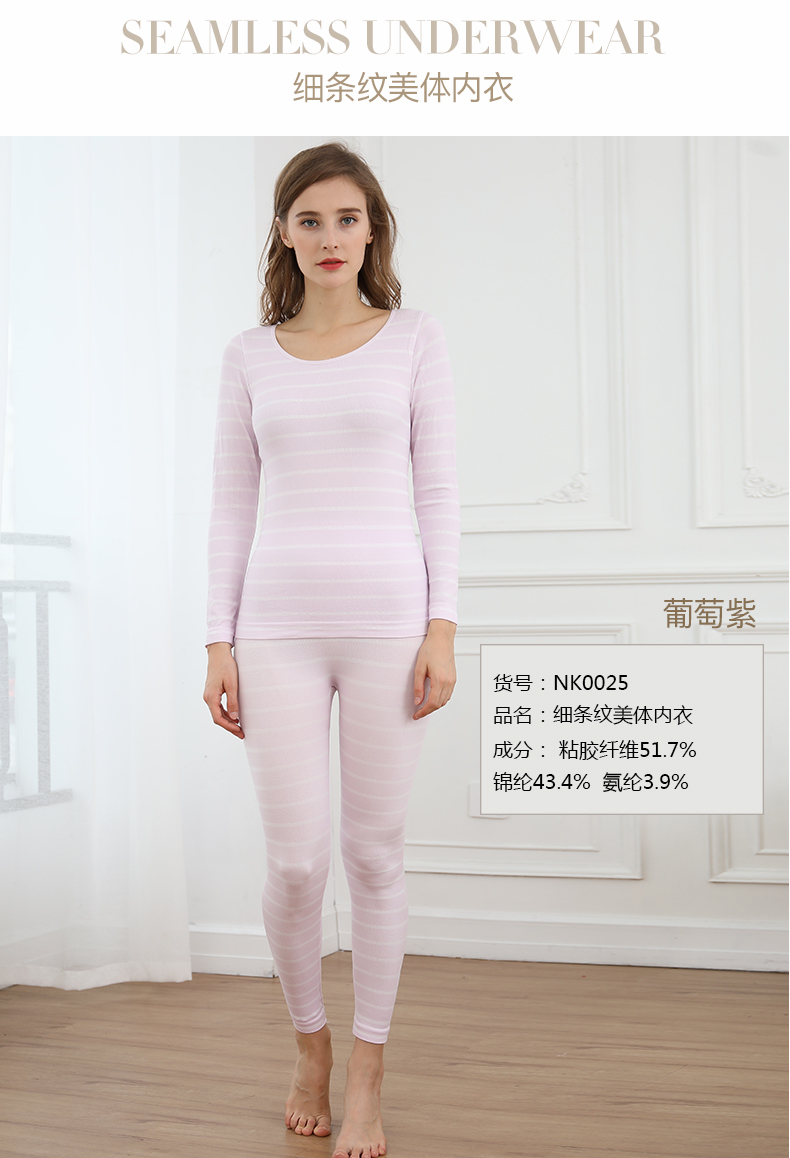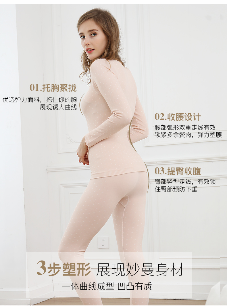 浪莎無縫提花美體保暖內(nèi)衣套裝女士緊修身薄款秋衣秋褲性感打底冬