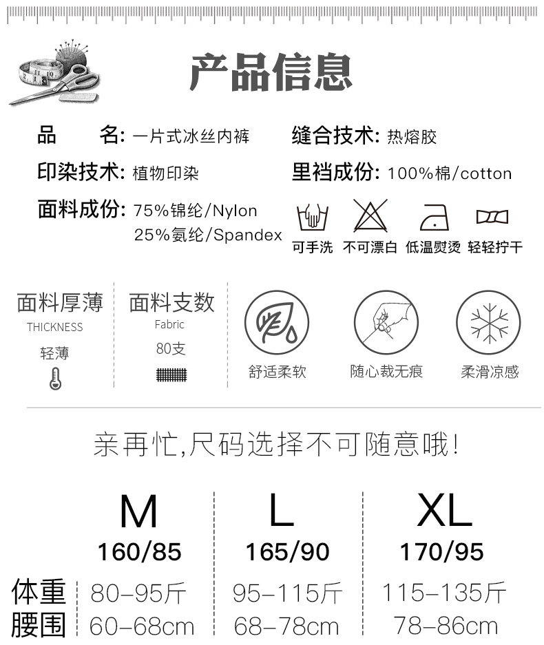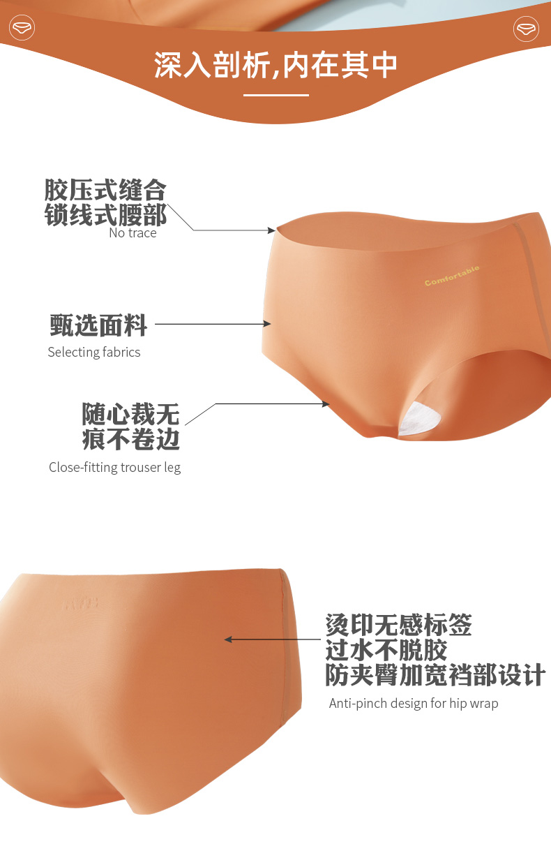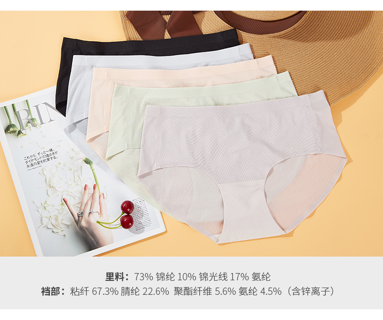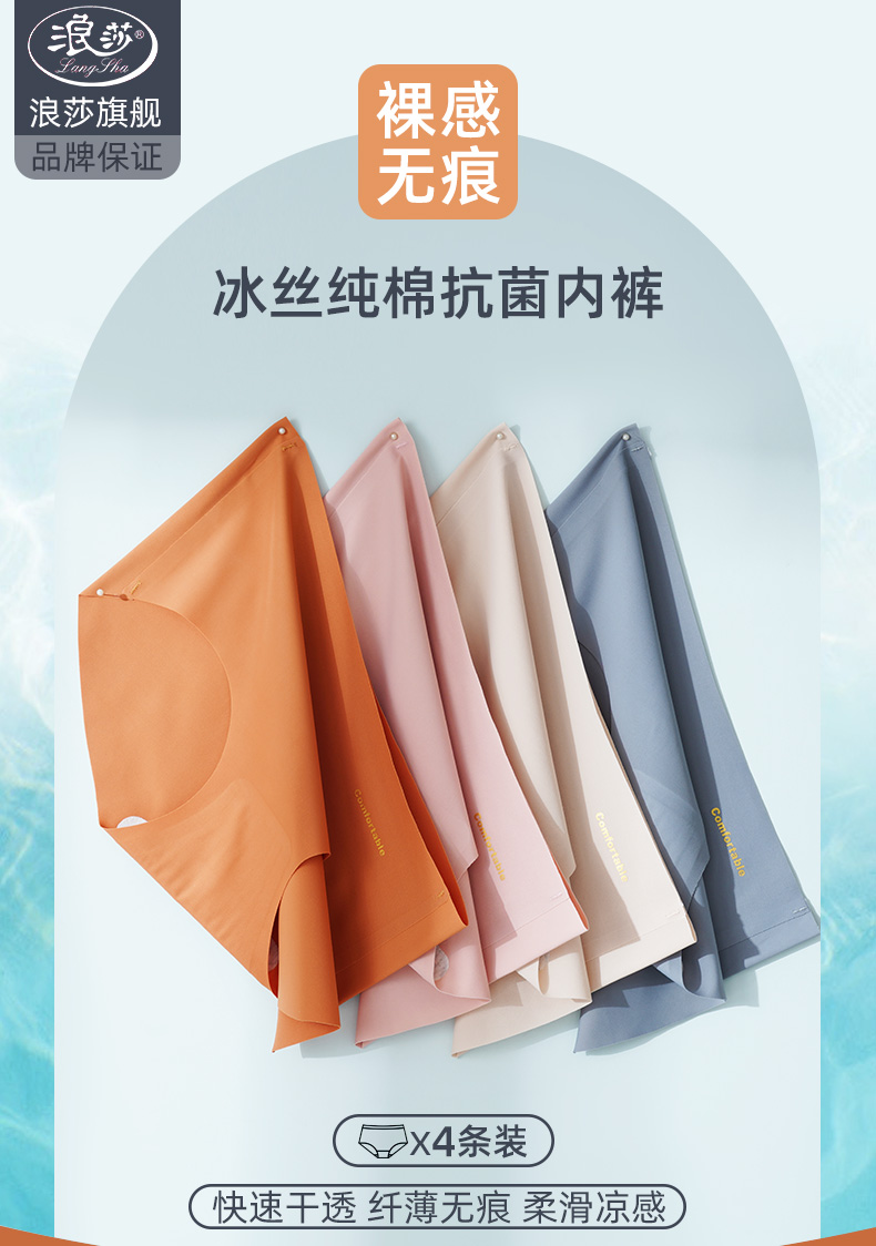 浪莎無痕內褲女士冰絲純棉襠抗菌春夏薄透氣一片式中腰三角短褲ZW