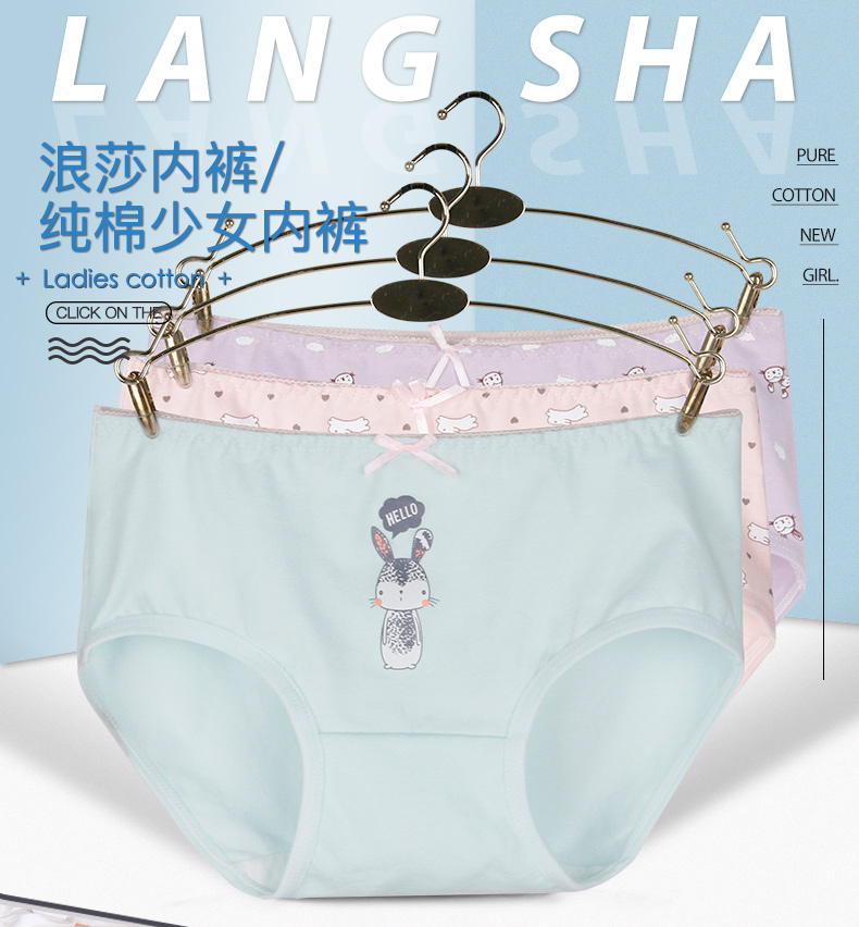 浪莎女士內(nèi)褲女三角褲中腰春夏少女純棉面料透氣全棉日系女生褲衩