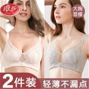 浪莎薄款內衣女無鋼圈聚攏大胸顯小蕾絲美背超薄文胸無痕女士胸罩